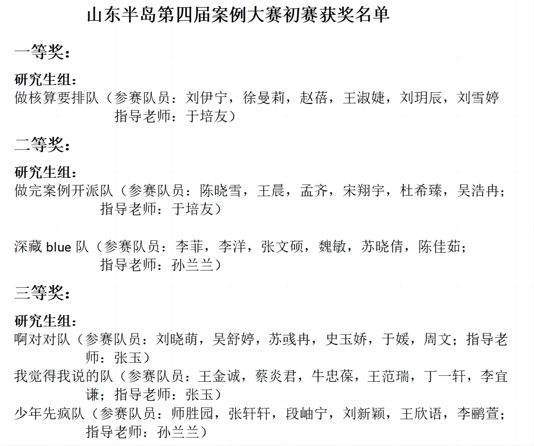 后续将按照大赛组织方分配的名额按排名确定几支队伍代表学校参加山东半岛第四届案例大赛复赛。
