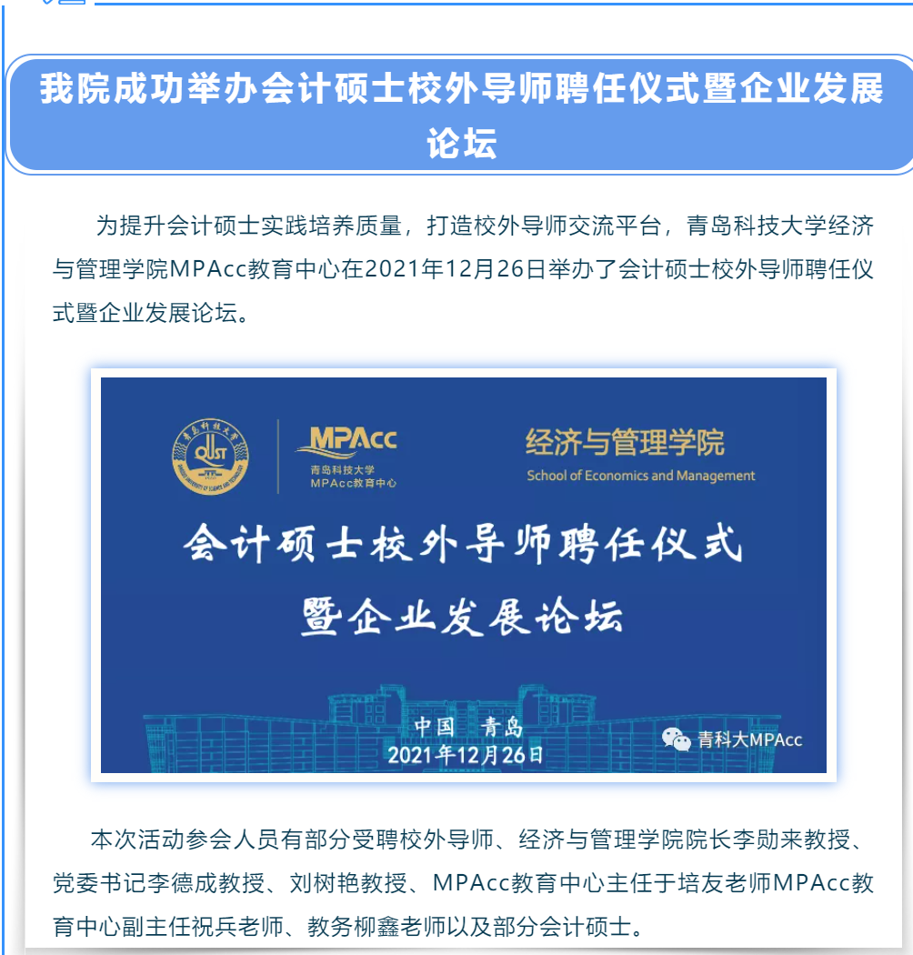 我院成功举办会计硕士校外导师聘任仪式暨企业发展论坛