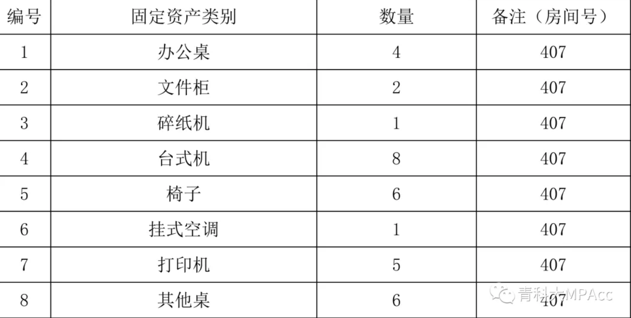 以镇政府行政楼 407 财政所办公室为例,盘点登记表格式及详细图片如下: